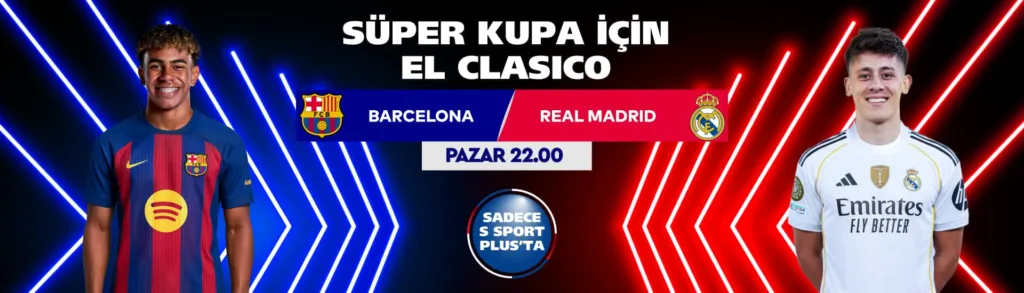 Barcelona ve Real Madrid arasındaki dev final mücadelesi, Türkiye’de sadece S Sport Plus üzerinden canlı yayınlanacaktır. Maçı izlemek için S Sport Plus’a üye olabilirsiniz.