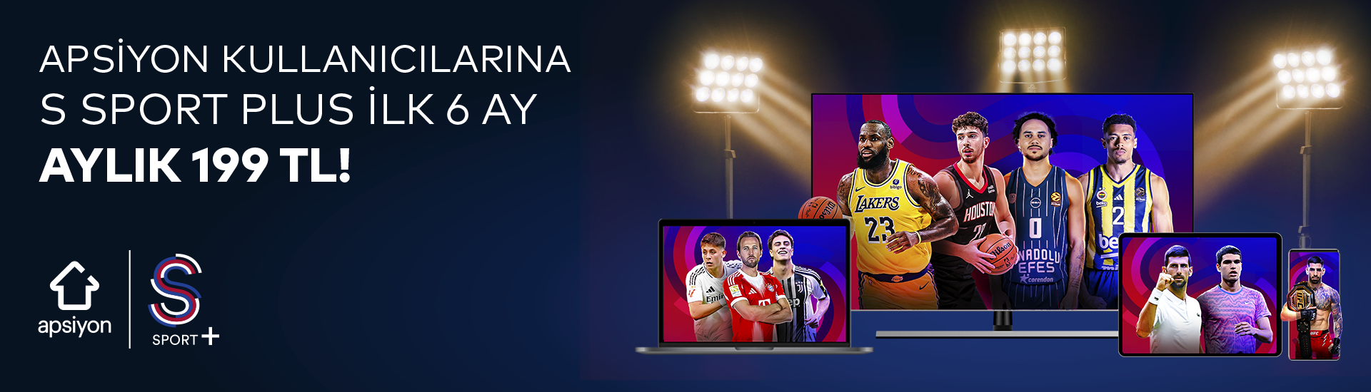 Apsiyon kullanıcıları EuroLeague, LaLiga, Serie A, NBA, UFC ve dünyanın önde gelen önemli spor organizasyonlarını S Sport Plus aylık paket ayrıcalığıyla ister Smart TV’den ister webten, ister cepten 6 ay boyunca ayda 199 TL’ye izliyor!