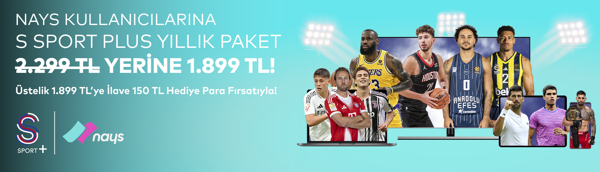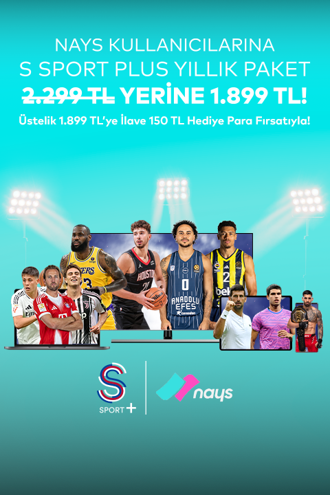 NAYS Kullanıcıları EuroLeague’den LaLiga’ya, Serie A’dan Bundesliga’ya, NBA’den UFC’ye, tenisten boks gecelerine dünyanın önde gelen spor organizasyonlarını S Sport Plus ayrıcalığıyla ister Smart TV’den, ister webten, ister cepten Tekrar-İzle özelliği ile S Sport Plus yıllık paketi 2299 yerine 1899’a izliyor!