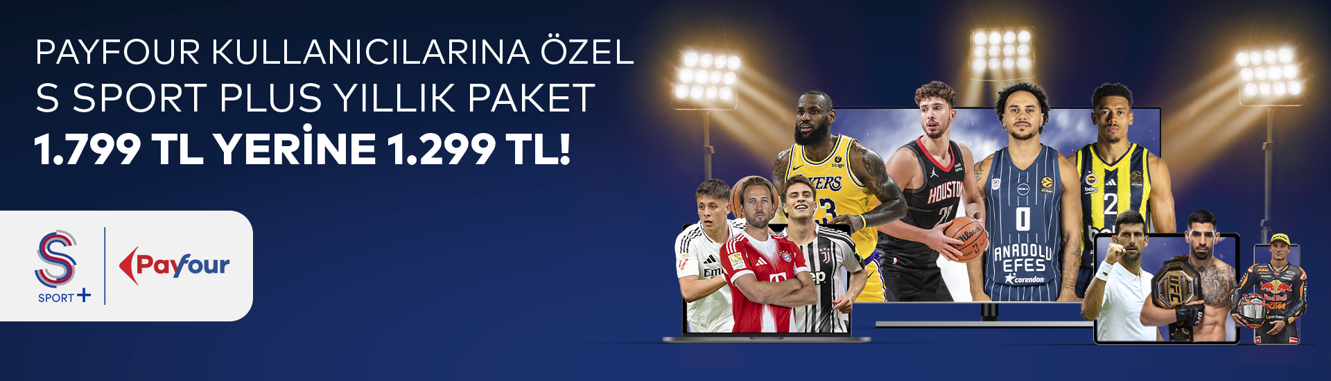 Payfour kullanıcıları EuroLeague’den LaLiga’ya, Serie A’dan Bundesliga’ya, NBA’den UFC’ye, tenisten boks gecelerine dünyanın önde gelen spor organizasyonlarını S Sport Plus ayrıcalığıyla ister Smart TV’den, ister webten, ister cepten Tekrar-İzle özelliği ile 1 yıl boyunca 1799 TL yerine 1299 TL’ye izliyor.