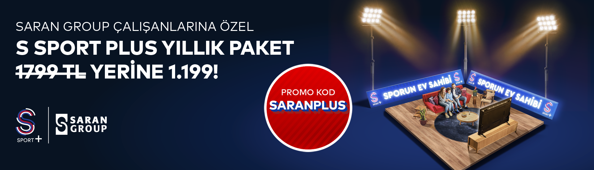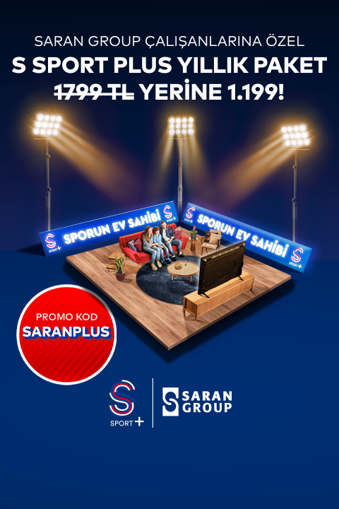 Bu kampanya ile Saran Grup çalışanlarına S Sport Plus yıllık paketi 1799 TL yerine 1199 TL’ye sunulmaktadır. Üyeliğinizi iptal etmediğiniz takdirde, indirimli kampanya döneminin ardından S Sport Plus yıllık paket üyeliğiniz, otomatik yenileme özelliğiyle takip eden dönem için güncel fiyatlar ile yenilenir. S Sport Plus kullanımınıza bağlı olarak kullanmakta olduğunuz internet paketinizin kotası etkilenebilir. İnternet tüketimine bağlı oluşabilecek ek maliyetler kullanıcıya aittir. Kampanya 31 Aralık 2025 tarihine kadar geçerlidir. Kampanyadan her bir kullanıcı bir kereye mahsus olarak faydalanabilir.
