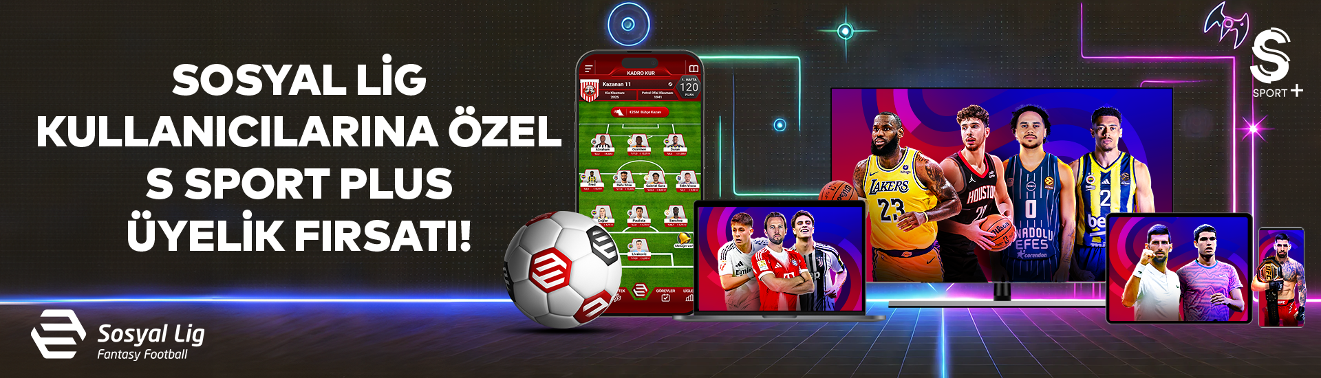 Sosyal Lig kullanıcıları LaLiga, Serie A, EuroLeague, NBA, UFC, ATP Masters 1000, NFL, NASCAR, MotoGP ve dünyanın önde gelen birçok spor organizasyonunu S Sport Plus ayrıcalığıyla ister Smart TV’den ister webten ister cepten indirimli olarak izliyor. İndirimli S Sport Plus üyeliği için ssportplus.com üzerinden yapacağın üyeliklerde SOSYALLIG kodunu kullanman yeterli. Kampanya dönemsel olarak değişkenlik gösterebilir.