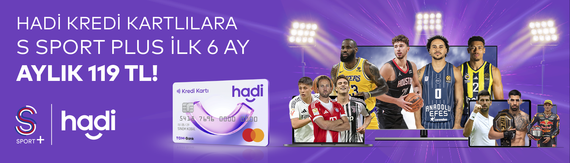 Bu kampanya ile TOM Bank müşterilerine S Sport Aylık Paket ilk 6 ay aylık 119 TL’ye sunulmaktadır. Üyeliğinizi iptal etmediğiniz takdirde, indirimli kampanya döneminin ardından S Sport Plus aylık paket üyeliğiniz, otomatik olarak yenileme özelliğiyle takip eden dönem için güncel fiyat ile yenilenir. S Sport Plus kullanımınıza bağlı olarak kullanmakta olduğunuz internet paketinizin kotası etkilenebilir. İnternet tüketimine bağlı oluşabilecek ek maliyetler kullanıcıya aittir. Kampanya 30 Kasım 2025 tarihine kadar geçerlidir. Kampanyadan her bir kullanıcı bir kereye mahsus olarak faydalanabilir.