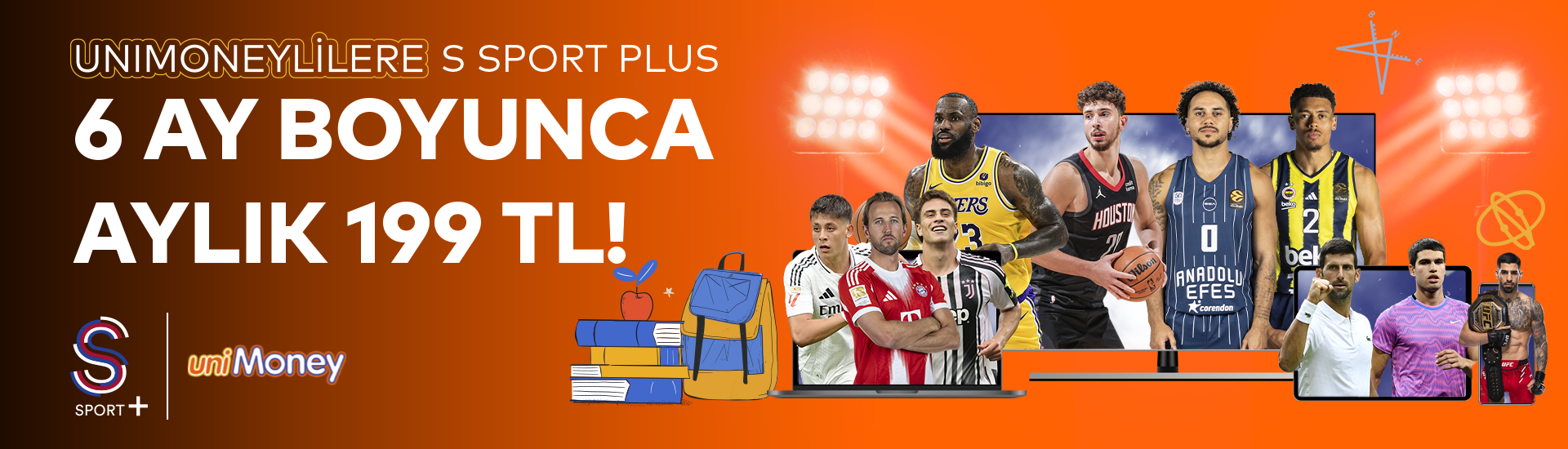 Unimoney kullanıcıları EuroLeague’den LaLiga’ya, Serie A’dan Bundesliga’ya, NBA’den UFC’ye, tenisten boks gecelerine dünyanın önde gelen spor organizasyonlarını S Sport Plus ayrıcalığıyla ister Smart TV’den, ister webten, ister cepten Tekrar-İzle özelliği ile 6 ay boyunca ayda 199 TL’ye izliyor!