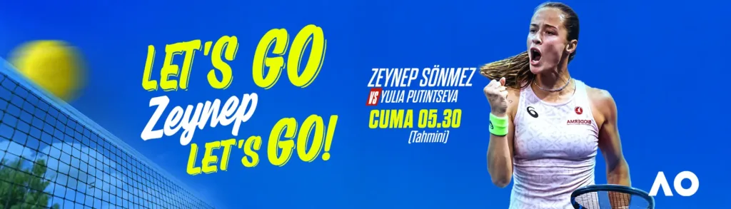 Avustralya Açık (Australian Open) heyecanı Melbourne’de tüm hızıyla sürerken, Türk tenisi adına rüya gibi günler yaşıyoruz. Elemelerden gelerek ana tabloya kalan ve üst üste aldığı galibiyetlerle adından söz ettiren milli gururumuz Zeynep Sönmez, kariyerinin zirvesine çıktı ve adını 3. tura yazdırdı. Şimdi rakip Yulia Putintseva!