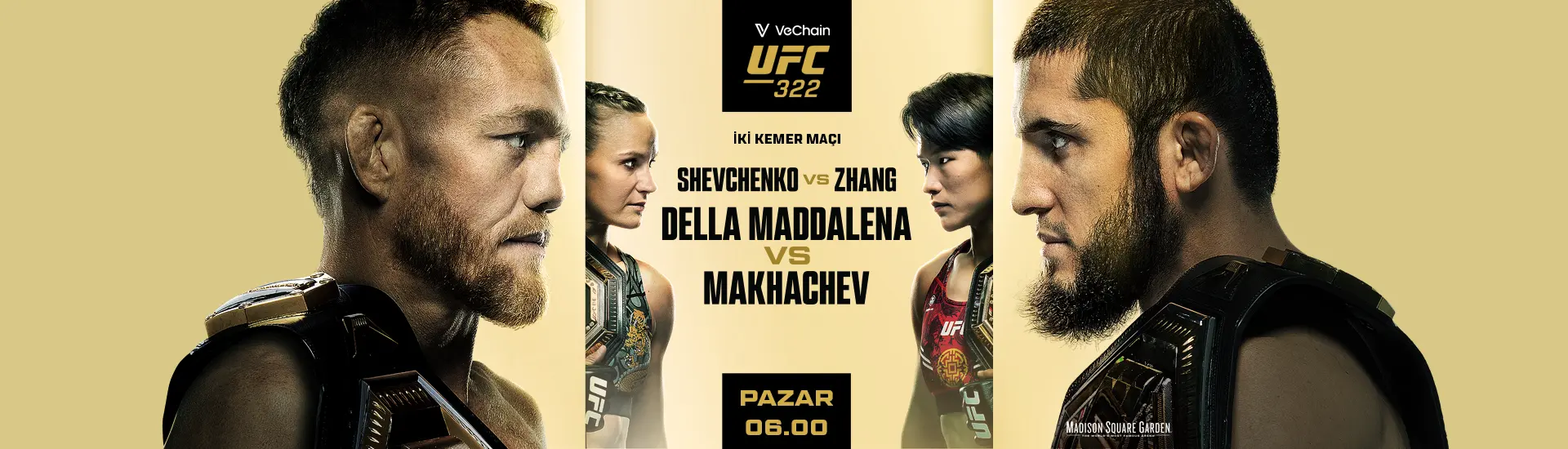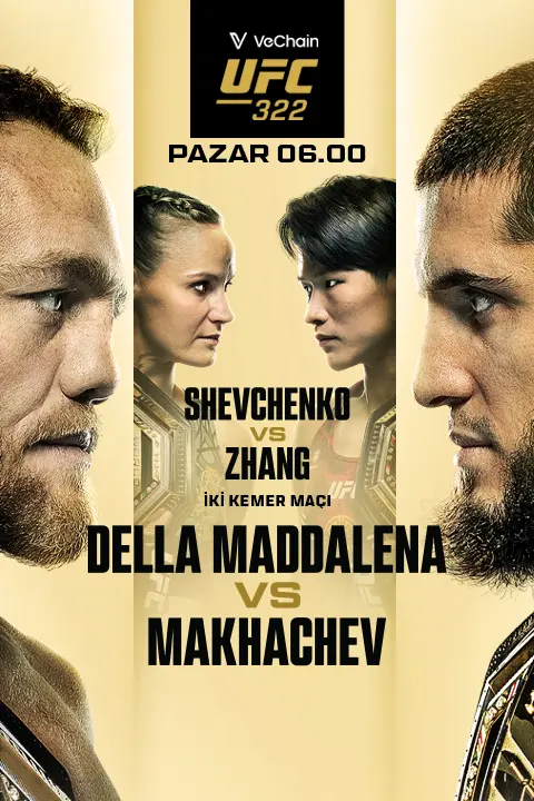 Octagon’da nefesleri kesecek bir şampiyonluk gecesi! UFC 322, 15 Kasım’ı 16 Kasım’a bağlayan gece, Pazar sabahı TSİ 06:00’da, dövüş dünyasının kalbi bu kez New York’taki efsanevi Madison Square Garden‘da atacak. Yarı orta sıklet şampiyonu Jack Della Maddalena, tehlikeli rakibi Islam Makhachev karşısında kemerini savunacak. Güç, hız ve stratejinin çarpışacağı bu gecede MMA tarihine geçecek anlar yaşanacak. Bu tarihi mücadeleyi S Sport Plus’ta canlı izle!