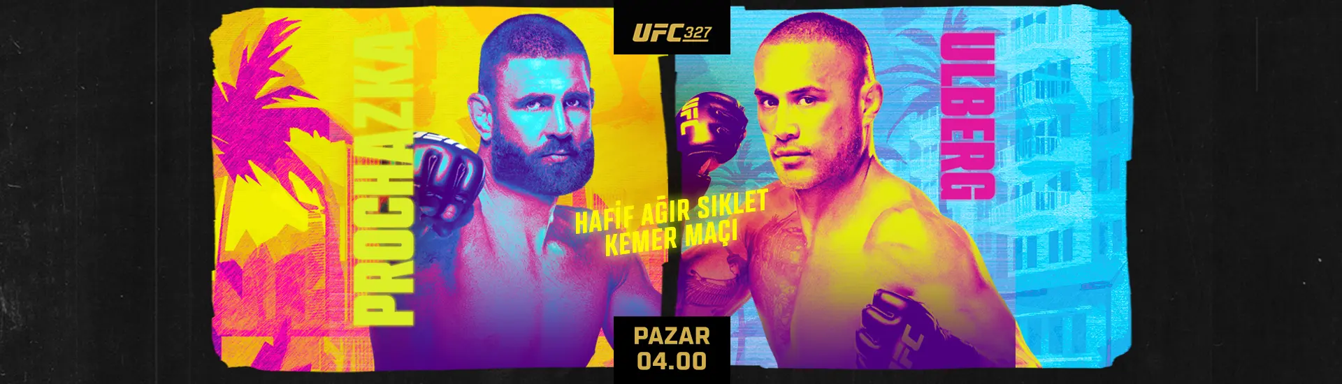UFC 327, 11 Nisan Cumartesi’yi 12 Nisan Pazar’a bağlayan gece 04.00’te, güneşin ve eğlencenin başkenti Miami’deki Kaseya Center’da sahne alıyor. Boştaki hafif ağır sıklet kemeri için eski şampiyon, kafesin samurayı Jiří Procházka, 9 maçlık muazzam bir galibiyet serisi yakalayan elit nakavtçı Carlos Ulberg ile kozlarını paylaşıyor. Bir yanda öngörülemez dövüş tarzıyla Procházka, diğer yanda kusursuz kickboks yetenekleriyle Ulberg. Bu tarihi geceyi S Sport Plus farkıyla canlı izle!